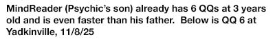 Psychic turned 11 in January, 2025, and is now retired from agility but is doing animal acting when something arises. Psychic's son, MindReader, made his trial debut in May, 2023 (video below). He went through novice and open in only 3 trials - way faster than any dog I've ever trained. He earned his Excellent Jumpers title in November. So, while he is competing in Master, he is now going through all the baby dog stages I expect at his age. Gale went into early retirement from competition as I just don't have time to train and run three dogs. That said, Gale is my new teaching assistant, running for some of my students who want to experience the adrenaline rush of running a crazy fast dog and learning to handle it!